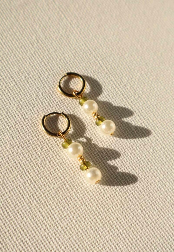 Oorbellen - The green and the pearl