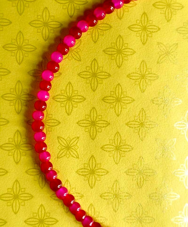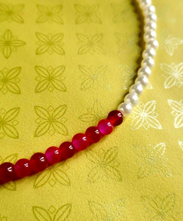 Deze handgemaakte ketting is uniek in zijn soort. Hij valt als een kort model mooi om te hals en is daardoor goed te combineren met andere sieraden.