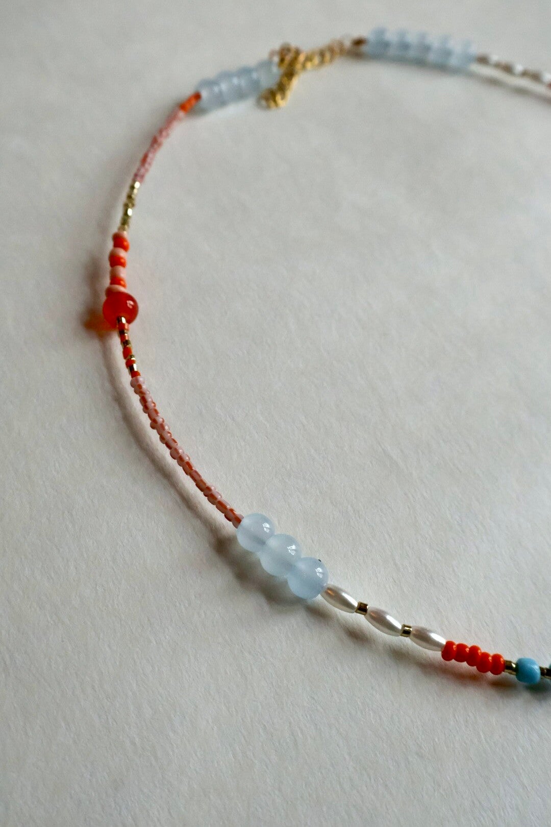 Deze handgemaakte ketting is uniek in zijn soort. Hij valt als een kort model mooi om te hals en is daardoor goed te combineren met andere sieraden.