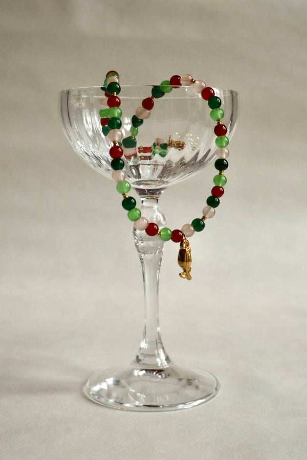 Deze handgemaakte ketting is uniek in zijn soort. Hij valt als een kort model mooi om te hals en is daardoor goed te combineren met andere sieraden.